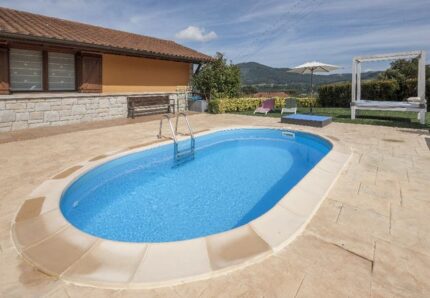 Structure acier garantie 4 ans. Le liner n’étant pas en contact direct avec le sol, cela lui assure une résistance supplémentaire. Équipée d’un skimmer pour une filtration efficace.
